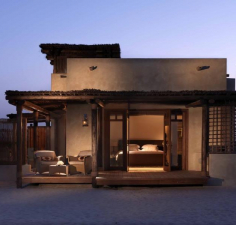 Sir Bani Yas Island, nedaleko arabského přírodního parku s divokými zvířaty. K dispozici je venkovní bazén a lázně. Hotel nabízí spoustu volnočasových aktivit jako např. jízdu na koni nebo v kajaku, pěší turistiku, a šnorchlováni. Vily jsou vybaveny v africkém stylu, s klimatizací, minibarem a terasou. Některé z vil disponují vlastním soukromým bazénkem. V okolí najdete 5 stravovacích zařízeni, posilovnu a soukromou pláž, která je k dispozici ve vedlejším rezortu.